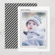 Stylish and cute photo cards are perfect for all your friends and family this holiday season. Customize the text "happy hanukkah" with your own greet and change the family name and the year and swap out the picture for a photo of your kids, pet, or the whole family. The design features a black border around the picture and a place to put your family name and the year. The back features black and white stripes pattern.