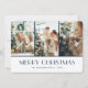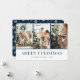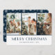 Modern blue and white photo Christmas card featuring a photo collage on the front and a holiday pattern of snowflakes at the back. Easily personalize this elegant holiday card with your favorite photos and text.