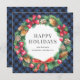 Personalizado azul búfalo plancha tarjeta de vacaciones de negocios con una acuarela de ramas, conos y cintas Navidades de color. Personalice fácilmente esta tarjeta de vacaciones de negocios con el nombre de su empresa.