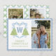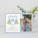 Tarjeta Festiva Blue Chinoiserie Escudo Monograma de árbol de Navi