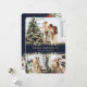 Elegant blue and gold photo Christmas card featuring poinsettia, holly and red berries. Easily personalize this botanical holiday card with your photos and text.
