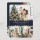 Tarjeta Festiva Blue Gold Elegant Botanical Photo Christmas Card