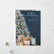 Tarjeta Festiva Blue Gold Green Christmas Tree Photo Personalized