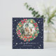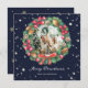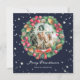 Tarjeta Festiva Blue Photo Stars Snowflakes Wreath Merry Christmas