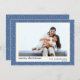 Desee a sus amigos y familia una Feliz Navidad con esta linda tarjeta que presenta un sencillo patrón de nieve de puntos de polka azul y blanco, personalizado con su foto, saludo y nombre.