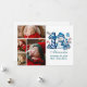 Celebre la primera temporada de vacaciones de su pequeño hijo con este alegre diseño de invierno con un número de manitas azules, adorables muñecos de nieve, y dulces y regalos dispersos. Personalizar con la foto de su bebé y los detalles de su nacimiento para crear un recuerdo que le traiga encanto y magia a sus recuerdos de vacaciones.