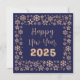 Square wish card Happy New Year written in English in gold font with a lot of golden stars on a blue background- editable text and background