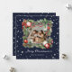 Elegante tarjeta de Navidades fotográficos azules con una foto dentro de un Navidad acuarela de ramas de abeto, decoración holly y Navidades. Personaliza fácilmente esta tarjeta de Navidades de fotos estrellados con tu foto y tu texto.