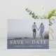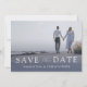 Anuncie su día especial con esta moderna y sofisticada tarjeta de "save the date", donde su foto favorita toma el centro del escenario debajo de un suave gradiente azul polvoriento superpuesto, creando un ambiente romántico y contemporáneo. En el reverso, agregue una segunda foto junto con detalles de la boda totalmente personalizables para crear un recuerdo verdaderamente personal. Perfecto para temas de boda minimalistas, elegantes y románticos, este diseño establece un tono elegante para su celebración.