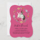 This customizable Boho Happy Easter brunch invitation with a magenta background features a restored design from a vintage Easter postcard in our collection. This colorful, whimsical card depicts two playful Easter Bunny Rabbits surrounded by a wreath of watercolor wildflowers. One rabbit is white and the other rabbit is grey and white. The white rabbit watches as the upright grey and white rabbit plays an Easter egg game of balancing a maroon colored egg while it is suspended on a string tied to the ends of two sticks.