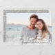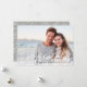 Elegante tarjeta fotográfica de vacaciones cuenta con una foto panorámica de sangre completa con un gran reborde de bóveda de luz para un aspecto festivo y burbujeante. "Feliz Año Nuevo" o tu elección de saludo de vacaciones está puesto en letras negras de escritura, con tu nombre(s) y el año al lado. Las tarjetas cambian a un fondo con patrones botánicos neutros.