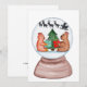 Dos ositos se sientan junto a un árbol de Navidad e intercambian regalos mientras Santa vuela por encima.