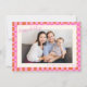 ¡Celebre la temporada con una tarjeta de vacaciones vibrante y alegre! Con un audaz borde a cuadros rosa y naranja, este diseño enmarca hermosamente su foto familiar favorita. Personalice con su saludo y el nombre de su familia para un toque único. Disponible como tarjeta impresa o descarga digital para compartir de manera rápida y sencilla. ¡Perfecto para difundir la alegría navideña de una manera divertida y moderna!