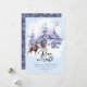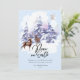 El diseño de la tarjeta de vacaciones de temática de bosque de madera acuarela presenta un bosque pintado a mano puesto en un fondo de acuarela nevado y está acentuado con ciervos de acuarela y un búho de invierno. "Paz en la Tierra" es tipografía moderna a mano y está emparejada con texto tradicional. El reverso es un patrón de nieve que cae y copos de nieve. #Navidad #Fiestas #TarjetasDeFiestas