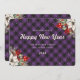 Tarjeta Festiva Botanical Purple Plaid Snow New Year Card