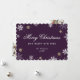 Tarjeta de vacaciones púrpura elegante con un marco encantador de nieve que cae, copos de nieve y estrellas contra un fondo púrpura. Una fuente de escritura elegante se utiliza para dar un aspecto más festivo a esta tarjeta de felicitación. Personalice fácilmente esta tarjeta de vacaciones sin foto en línea.