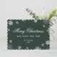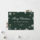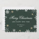 Tarjeta de vacaciones verde elegante con un marco encantador de nieve que cae, copos de nieve y estrellas contra un fondo verde. Una fuente de escritura elegante se utiliza para añadir un aspecto más festivo a esta tarjeta de felicitación. Personalice fácilmente esta tarjeta de vacaciones sin foto en línea.