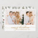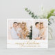 Moderna Foliage Botánico Elegante Guión 2 Tarjetas Navidades Collage de fotos. Esta minimalista tarjeta de navidades de fotografía múltiple incluye un collage de fotos en cuadrícula de bonito 2, un texto de saludo de "Feliz Navidad" escrito en caligrafía con letras a mano o tipografía tipo de letra cruz cruzada en oro y blanco. En la parte posterior del invierno acuarela vegetación botánica, bayas, hojas de eucalipto, agujas de pino y ramas. Estas tarjetas de Navidades de fotos Personalizados son una buena manera de recordar a sus seres queridos que están pensando en ellas esta temporada de vacaciones de invierno.
