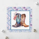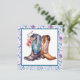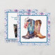 Agrega tu foto favorita a este dulce texto personalizado y a la tarjeta rústica de país y vaquera del Día de San Valentín con una ilustración de acuarela de sus botas de vaquero con un fondo floral rosa y azul. Agrega tu propio mensaje romántico en la parte posterior y sube tu imagen en el área de personalización.