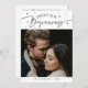 Modern New Year's photo template card featuring a typography text that says "bright new beginnings" with a picture. This design especially works well for those who had a big transition in their lives such as newlyweds or new graduates. You can add another picture and a message on the back of the card. White and black.