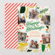 Comparte la alegría de la temporada con esta tarjeta de Felices Fiestas moderna, brillante y alegre, que presenta un diseño de corona botánica dibujada a mano colorida, rayas juguetonas y un collage de las fotos de tu familia favoritas. Personaliza con tus nombres y mensaje sincero para un saludo navideño verdaderamente único. ¡Perfecto para enviar deseos navideños, capturar recuerdos familiares y agregar un toque de color a la temporada navideña!