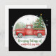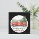 Funny xmas greeting, "Bringing Tidings of Comfort & Joy Ride" with a watercolor style painting of a vintage pickup truck carrying a Christmas tree.