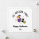 Tarjeta Festiva Bruja Bonita de Halloween en una Escoba Nombre Per