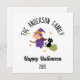 Agrega un toque festivo a tus celebraciones de Halloween. El diseño presenta una bonita decoración de Halloween con una bruja púrpura en una habitación con un gato negro. ¡Esto es perfecto para bendecir a tus amigos por fiestas de Halloween y bolsas de regalo! ¿El punto fuerte? ¡Un nombre familiar personalizado! Añada el nombre de su familia al diseño, como "La familia Smith", creando una característica única y reflexiva de vacaciones que es verdaderamente suya.