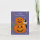 Tarjeta Festiva Bruja Gato Calabaza Tallada Niños Halloween