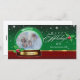Buenas fiestas en fondo verde, las rayas rojas en terceros, añaden su foto dentro del globo de la nieve y su apellido. Accesorio de oro en el top y la parte inferior