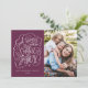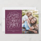 Desee a sus seres queridos una feliz festividad enviándoles nuestra tarjeta de fotos de Good Tidings of Comfort & Joy. La tarjeta de vacaciones incluye la frase "Buenas novedades de comodidad y alegría" en un guión blanco con letras a mano con toques holly dibujados a mano y decorativos contra un fondo morado de berry. Personalice la parte delantera de la tarjeta agregando su foto, nombre y año. La carta vuelve a un patrón de bayas huecas dibujadas a mano.
