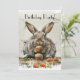 La invitación para el cumpleaños incluye un adorable conejito regordete frente y centro, masticando alegremente un magdalena gigante. Con su vientre redonda, sus mejillas suaves y sus diminutas patas que sujetan el regalo, el conejito luce con mucho cuidado y contento. Las migajas están diseminadas por todo el hotel, lo que añade a la atmósfera alegre y alegre. En la parte de atrás, con un divertido tipo de letra escrito a mano, el texto dice: "¡Esperen para una dulce celebración!" A continuación, los detalles de los fiestas están ordenados cuidadosamente, invitando a los huéspedes a unirse a la diversión.