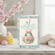 Esta adorable tarjeta de Pascua incluye un lindo conejo que aspira, o tal vez incuba, de un huevo de Pascua roto con las palabras "Feliz Pascua" sobre la cabeza en un guión rosa y azul vintage adornado con orejas conejitas. Personalice personalizando el mensaje en el interior y/o agregando su(s) nombre(s), o dejando esa parte en blanco si desea añadir más adelante sus propias firmas manuscritas.
