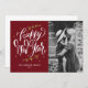 Send a personal and beautiful greeting with this personalized burgundy Happy New Year card, featuring elegant calligraphy and charming greenery accents. Customize the card by uploading your favorite photos, adding your names, and crafting a heartfelt message. The combination of modern typography and nature-inspired elements makes this card a sophisticated choice to send your warmest wishes. Whether for friends, family, or business associates, it’s the perfect way to ring in the new year.