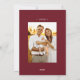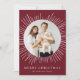 Elegante y moderna tarjeta de vacaciones con tu foto escondida en el interior de un marco circular blanco de explosión de sol. Personalice la tarjeta de Navidades con su nombre familiar con letras blancas en un fondo burdeos o con un color de su elección. La parte posterior de la tarjeta muestra el año y una foto adicional.