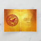 Papel chino tradicional dorado recortado de un caballo como motivo central con un gran ideograma chino del caballo como fondo. Diseño en tarjeta de felicitación vertical con textos al personalizar dentro de la tarjeta. Postal de vacaciones coincidente. Perfecto para el Año Nuevo Chino del caballo 2026.