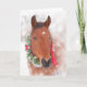 Navidades Caballo - un caballo rojo de bahía que llevaba un Navidad corona con oropel y arcos rojos. ¡Añade tu texto al personalizar para tus necesidades!