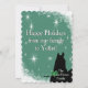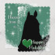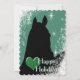 Un diseño de fondo estrellado verde con la silueta negra de un caballo y un corazón verde. Personalice con su saludo de vacaciones personal, mensaje y firma. La tarjeta de vacaciones perfecta para su amante de los caballos!
