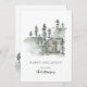 Tarjeta Festiva Cabaña Rústica Aquarela Verde Bosque Personalizada