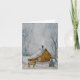 Tarjeta Festiva Cabina de ciervo y rústica en bosque de nieve
