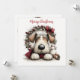 Tarjeta festiva personalizada de cachorro y corona - Escena navideña caprichosa con muñeco de nieve y tarjeta de vacaciones de invierno