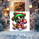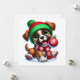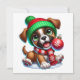 Celebra las fiestas con este cachorro juguetón con un gorro verde y una bufanda roja, sosteniendo felizmente un adorno festivo. Una tarjeta alegre para difundir sonrisas navideñas