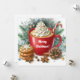 Watercolor invierno crema batida café caliente en una taza roja con tarjeta de vacaciones de galletas.