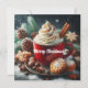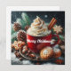 Tarjeta Festiva Café caliente con crema batida de invierno en una