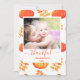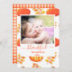 Calabaza Feliz Día de Acción de Gracias Tarjeta con Calabaza Naranja y Patrón de Hojas de Otoño en la parte frontal y patrón de cuadros naranjas en la parte posterior. Cambie el texto y la foto utilizando la opción personalizar esta plantilla. Crédito de la foto: Satya Tiwari en Pixabay.com