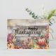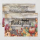 Celebre el Día de Acción de Gracias con nuestra tarjeta de vacaciones diseñada cuidadosamente, perfecta para expresar su gratitud y buenos deseos. La parte frontal de la tarjeta presenta un encantador arreglo de calabazas de otoño y hojas coloridas sobre un fondo de madera rústica, capturando la esencia acogedora de la temporada. La letra de estilo caligráfico elegante deletrea un mensaje festivo, agregando un toque de sofisticación al diseño. En el reverso, un sentido mensaje de Día de Acción de Gracias completa este saludo significativo, lo que lo convierte en una forma ideal de conectarse con seres queridos durante esta temporada de agradecimiento.