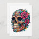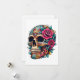 Calavera con tatuajes y flores, colores vivos, fondo sólido, centrado