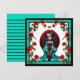 Tarjeta Festiva Calaveras de Azúcar con Rosas Turquesas y Rojas