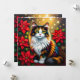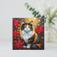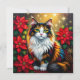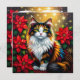 Tarjeta Festiva Calico Cat with Poinsettias Custom Christmas