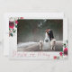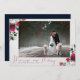CALIGRAFÍA + COLECCIÓN BLOOM | Tarjeta de vacaciones fotográfica de Navidad roja, alegre y casada. Un diseño de tarjeta de vacaciones festiva lujosa que presenta una exquisita caligrafía moderna de lujo a mano en rojo, su hermosa fotografía de boda horizontal enmarcada detrás de una textura de papel de acuarela de arte fino, y arreglos suntuosos de peonías burdeos, rosas de alabastro, acebo y pino, acentuados con follaje plateado. La parte posterior de la tarjeta es un rico color navy, que combinado con el follaje burdeos, es la combinación de colores más candente de esta temporada.